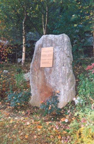 Utvandrarsteinen vart høgtideleg avduka torsdag 6. august 2002 under ei slektssamling som vara i tre dagar. Plata var dekka av eit gammalt åkle frå garden og Jens Hogrenning og kona Hallfrid stod for avdukinga. Jens las eit dikt han sjølv hadde skrive etter eit besøk i Amerika. Under besøk på ein farm i Midtvesten fekk han ei sterk kjensle av korleis tankane hjå utvandrarane av og til kunne gå til gamlelandet. Verset står nedst på plata og lyder slik: