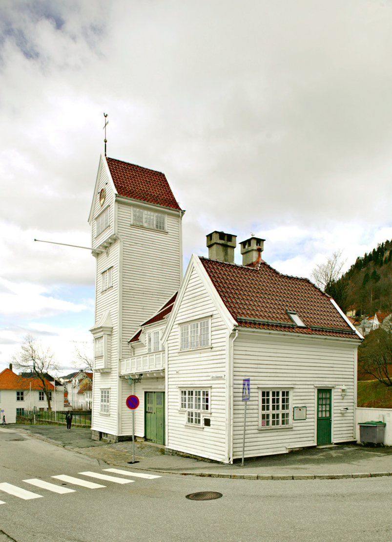 Både Skansen og Sandviken brannstasjoner ble tegnet av Paul Theodor Bjørnstad etter en bybrann i 1901. Først tegnet arkitekt Peter Andreas Blix en steinbygning i gotisk stil, men magistraten (borgermesteren og to rådmenn som sammen sørget for den daglige drift av byen) mente at en trebygning fikk holde. Den hvite bygningen med tårnet fikk blandet mottagelse da den stod klar i 1903, men den ble straks et markant landemerke.