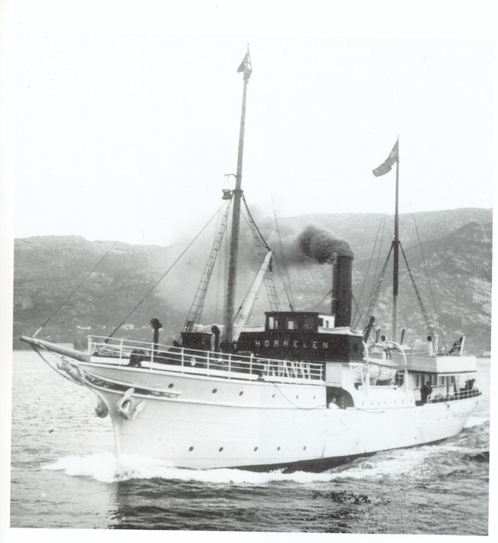 "Hornelen" var det tredje skipet til Fylkesbaatane, levert frå C Mitchell & Co i Newcastle i 1866. Båten var litt større enn "Framnæs", og gjorde same fart. "Hornelen" vart også ombygd etter kort tid, i 1880-åra, ved Nylands Verksted. I 1915 gjekk båten på grunn og sokk på Svanøybukta, men vart heva, reparert og sett inn att i rutefart i 1917. Eit nytt uhell følgde i 1926. Då grunnstøytte "Hornelen" og sokk i Feiefjorden, men på ny heva og reparert. Som "Framnæs" vart "Hornelen" teken ut or fart i 1951 og seld til opphogging.