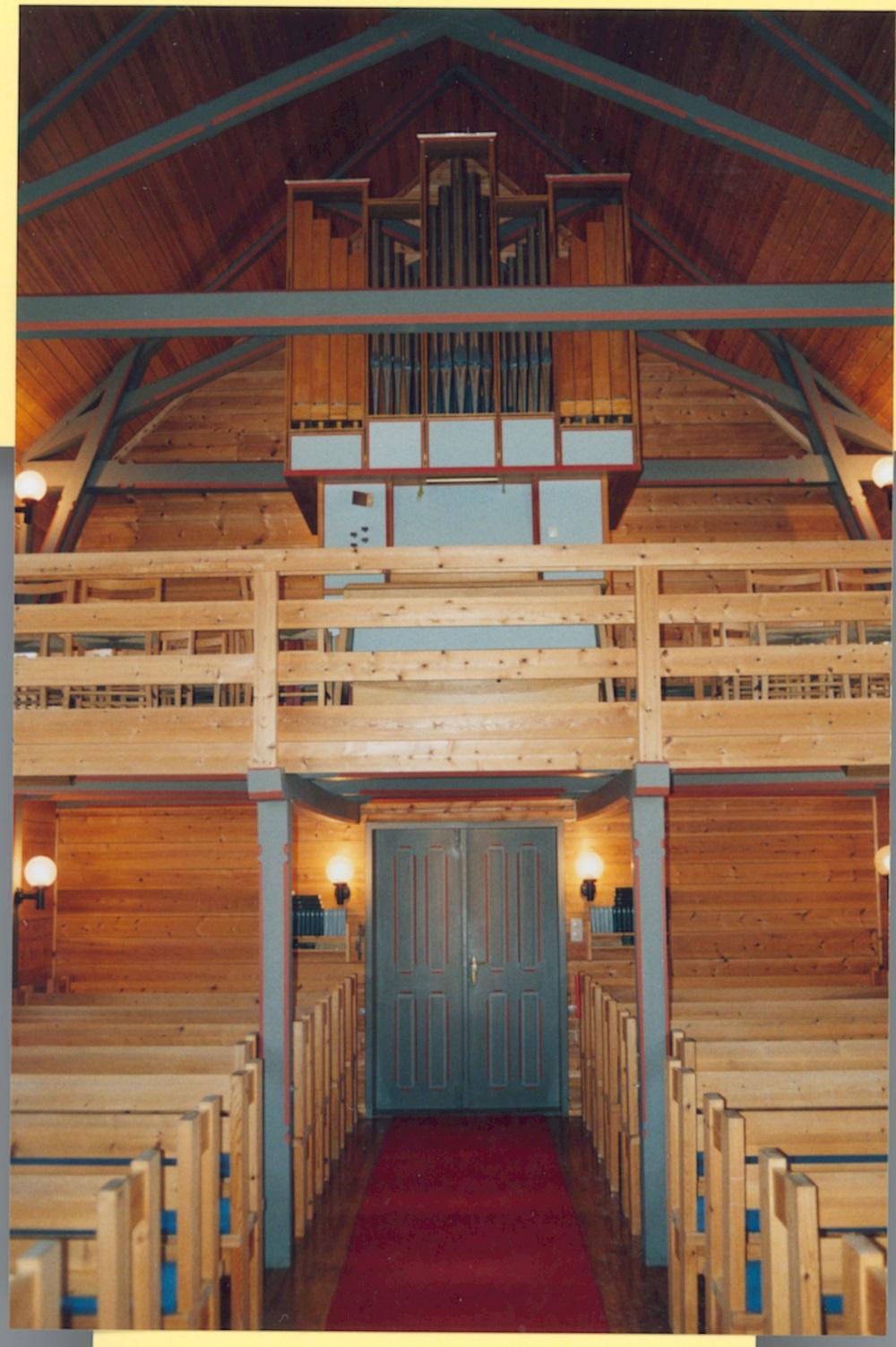 På nordsida framme i skipet stod det tidlegare eit husorgel. Då kyrkja fekk nytt orgel, vart det gamle gitt i gåve til Hans J. Hovlandsdal d.y. Han fekk det som ei takk for at han klatra opp i toppen av tårnspiret og henta ned hanen som hadde vore så uheldig å misse bakparten. Då hanen var reparert, tok Hovlandsdal turen opp i spiret nok ein gong for å setje han på plass att. Han utførte dermed ein heltemodig innsats som soknerådet meinte gjorde han vel fortent til å overta orgelet til odel og eige.