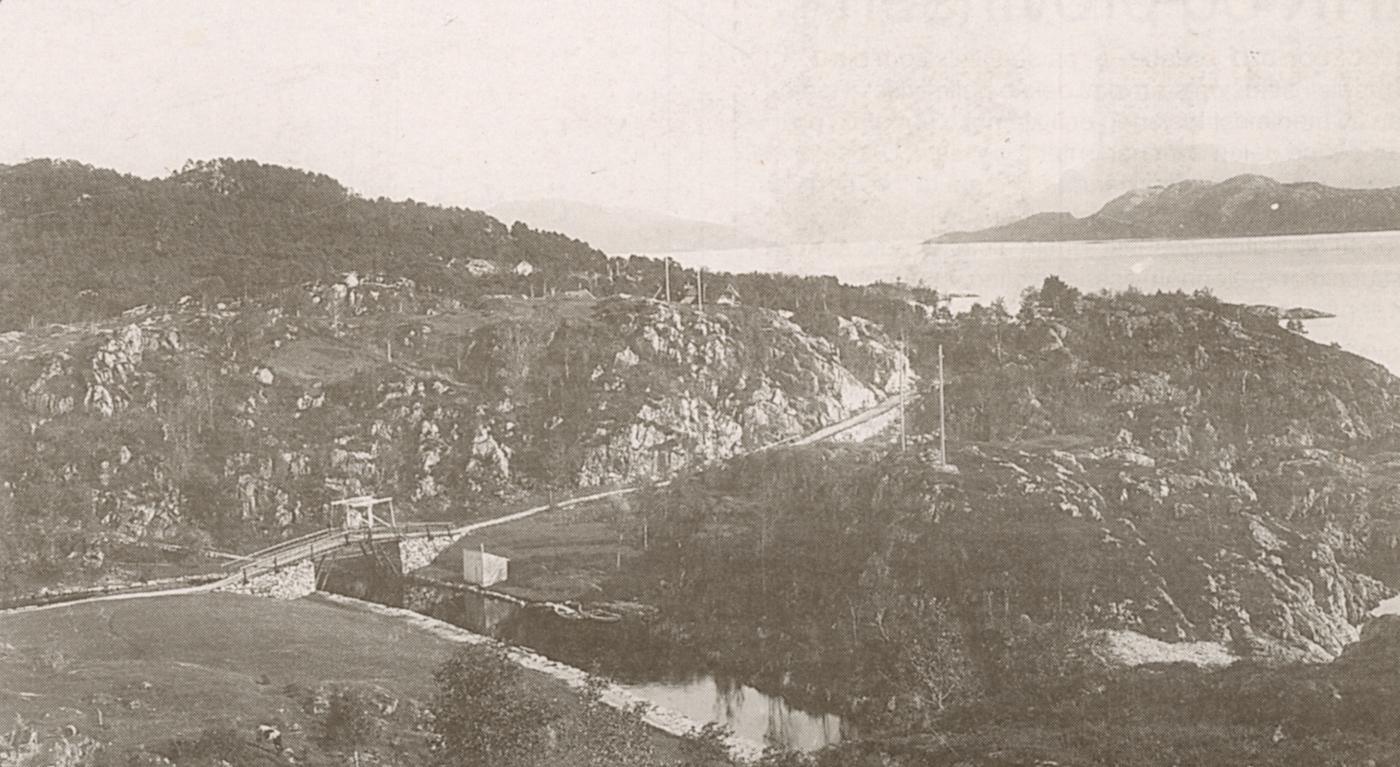 In this picture we can see the old bridge across the canal about 1900. The road from Krokane crosses the bridge and continues around what later came to be known as the canal turn. The strip of land was not more than 100 metres across, and it was a relief to all owners of boats and ships when the canal was completed in 1873.