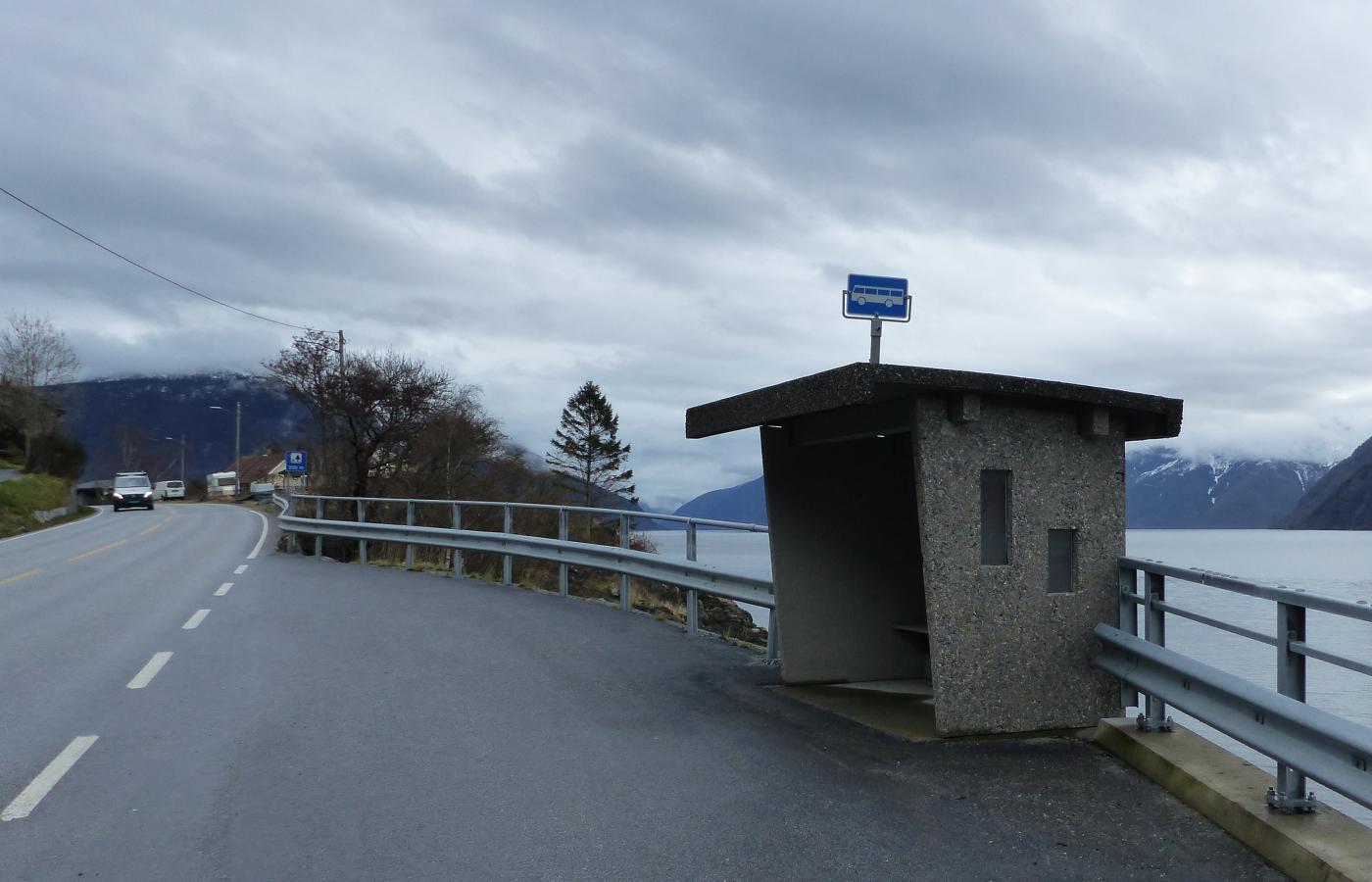 «Firda Billags buss-skur står over alt i fylket. Det blir enno [2017] produsert av Førde Sementvarefabrikk (sic.) og er teikna av Connie Henden.»