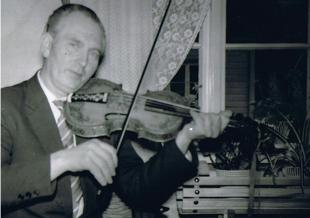 Spelemann frå Viksdalen, busett i Førde, med alderdomelege hardingfeleslåttar og svingande dansespel.