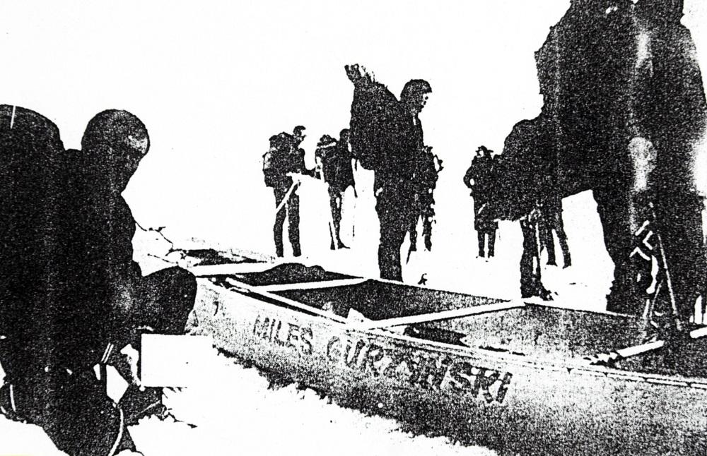 Gruppe to hadde med seg ein av kanoane over breen! På kanoen hadde dei måla eit namn med store bokstavar: MILES GURZYNSKI. Rett før avreisa omkom 17-åringen Miles i ei motorsykkelulukke. Han hadde vore med på førebuingane heile tida og som alle dei andre gledd seg til turen. Ekspedisjonen bestemte seg for å å ta med ei minneplate og heidra han ved ei minnestund oppe på Gallen. Den siste lina i innskrifta er ei helsing frå mor hans: "In mind constant tought. In heart a silent sorrow."