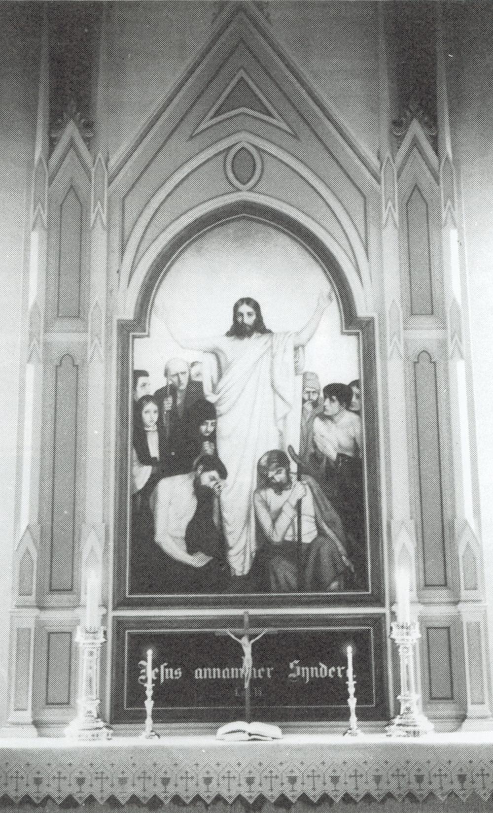 I koret over døra til sakristiet heng eit stort, og heller lite vakkert, krusifiks frå 1713. Nedst står årstala 1713, og over innskrifta står eit monogram. Her finst òg ein burgunder messehakel frå 1785, og restaurert i 1975, med applikert Kristusfigur på ryggen.