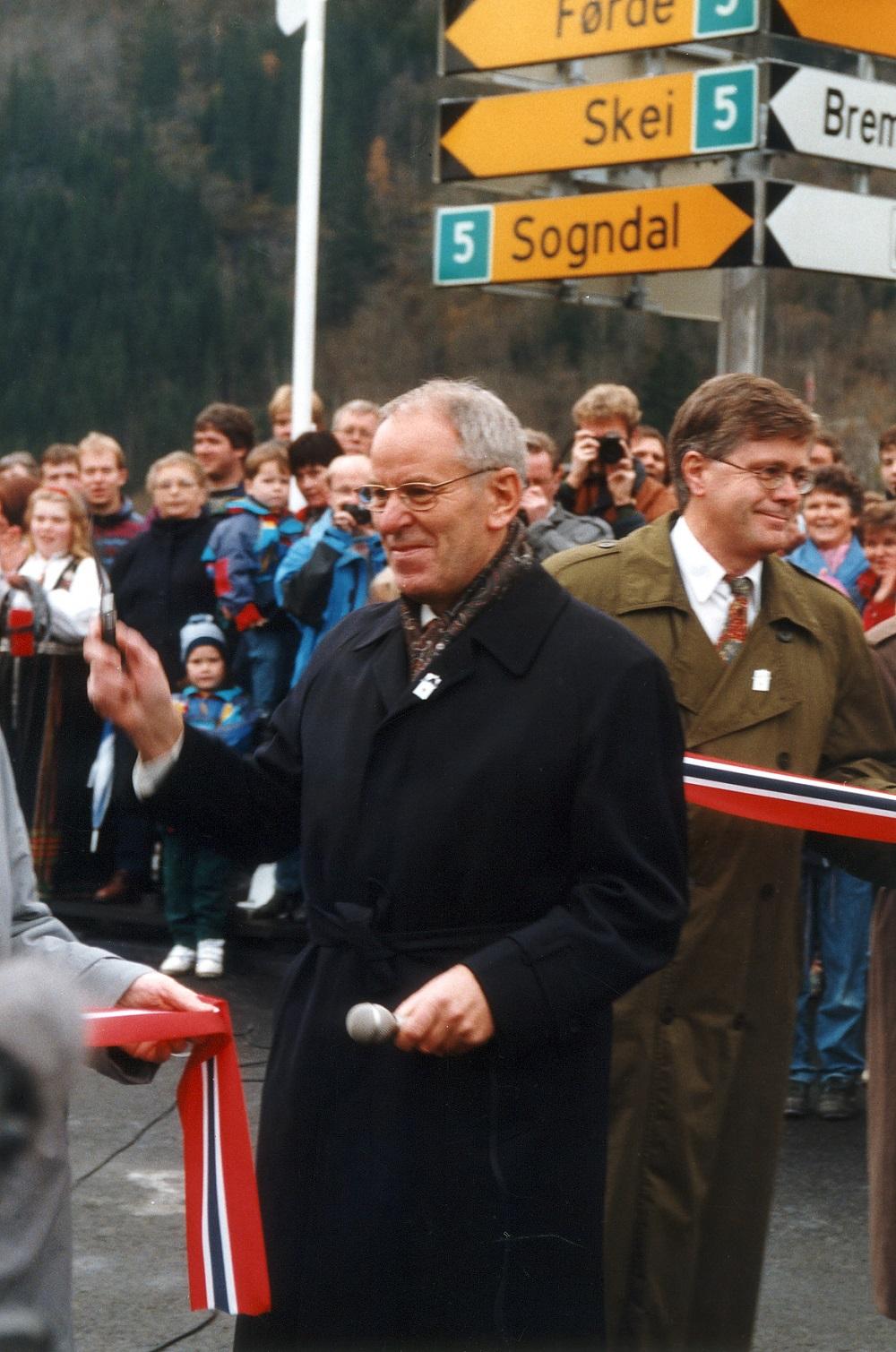 29. oktober 1994 opna "Fjærlandsvegen", og tverrsambandet mellom Sogn og Sunnfjord var endeleg ein realitet, etter nærare 100 års drøftingar og strid. Over fire tusen menneske møtte opp på opningsdagen. Dåverande samferdselsminister, Kjell Opseth, var den som fekk æra av å opna vegen.