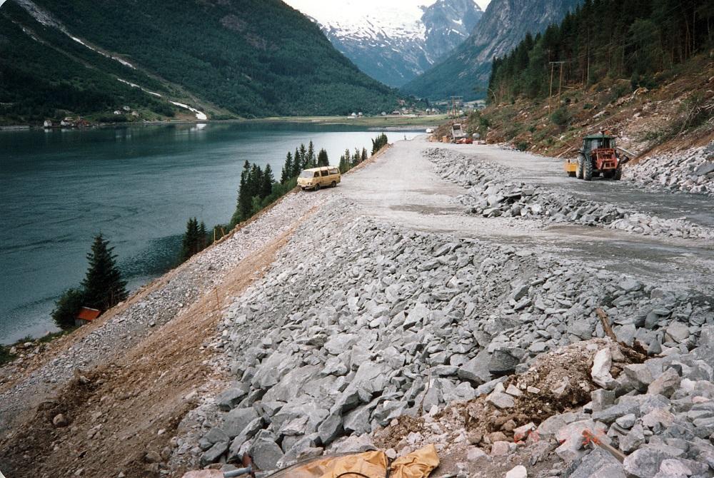 Når det gjeld arbeidet med tunnelane var det vanskar med dårleg fjell, slik at arbeidet gjekk seinare enn planlagt. Sprakefjell, som fenomenet er kalla, har skapt vanskar i fleire tunnelar i fylket. Det er enkelt forklart bitar av fjellet som losnar med eit brak grunna spenningar i fjellet. Mykje sprakefjell medfører meir sikring (bolting eller sprøytebetong), som forlenger tunneldrivinga og gjer anlegget dyrare. Sprakefjellet, saman med store masseutskiftingar i Sogndalsdalen, miljøtunnelen og ein del andre ekstrakostnadar, fordyra anlegget med 45 mill. kroner.