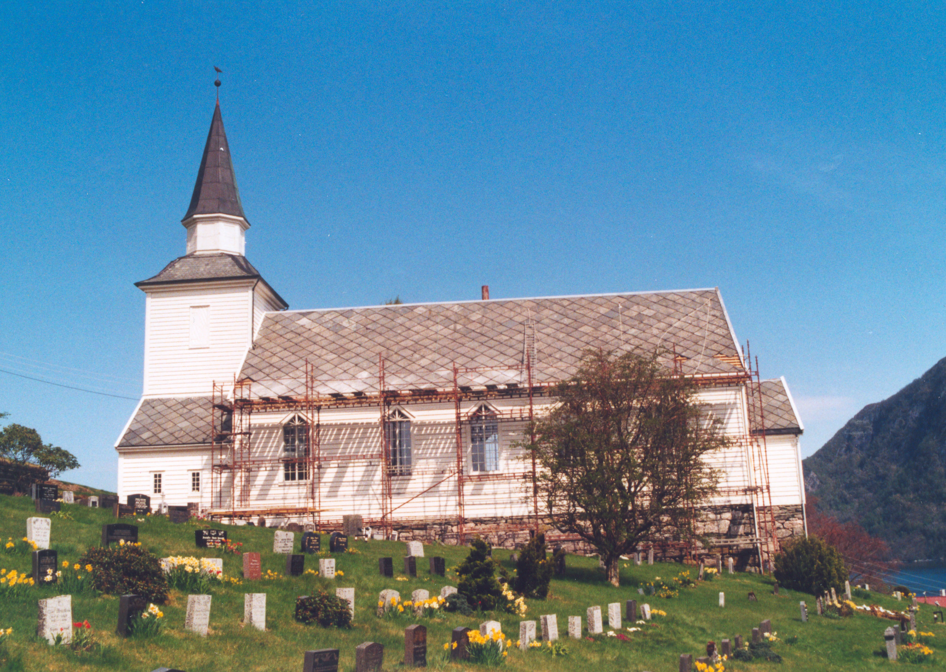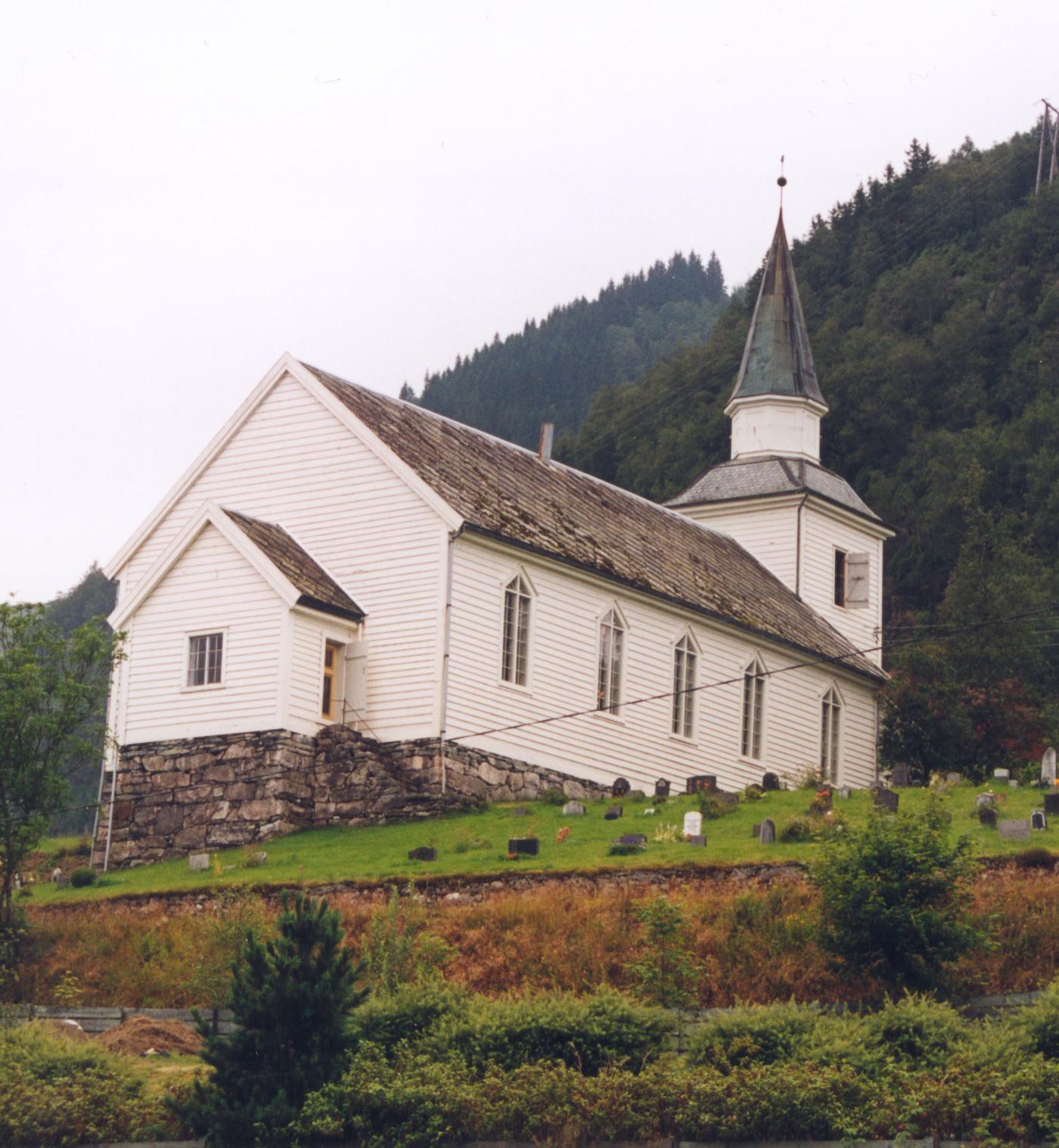 The solid steeple from the 1930s is the third to have adorned the Brekke church. The first two were not solid enough to withstand the strong southerly winds in the area.