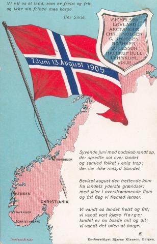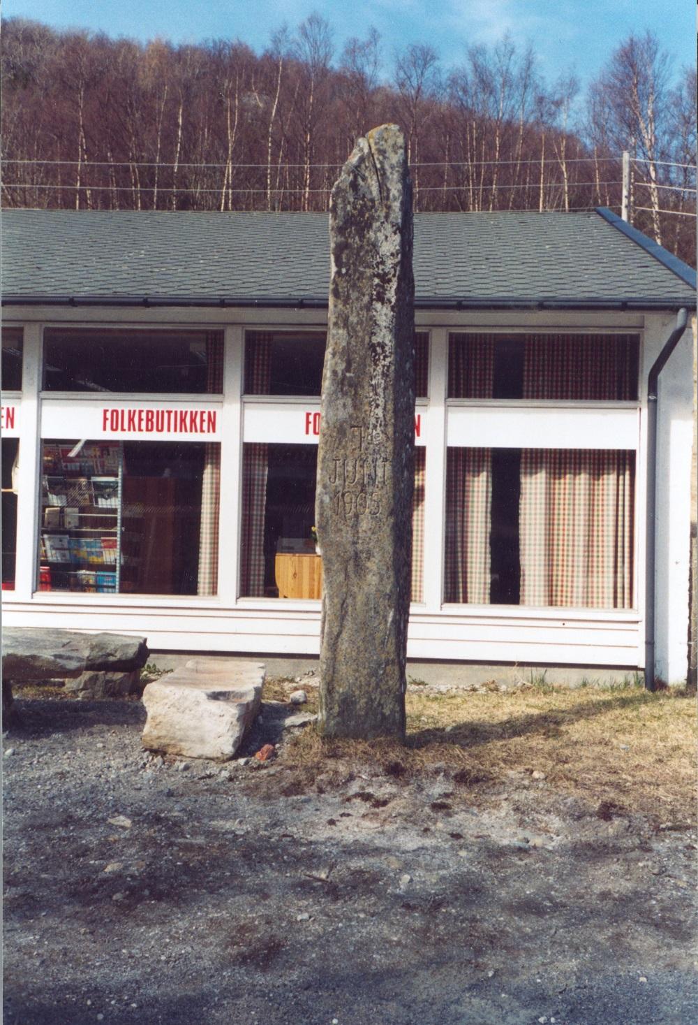 Kari Hovland fortalde at det var nokre "menn" som meinte at den viktige hendinga i 1905, med unionsoppløysing og eigen konge, måtte markerast med å reisa ein bautastein. Steinen hadde dei "på lager", han hadde lege og venta i tusenvis av år, ein stad ikkje langt utom dei gamle husa på Neset. Steinen var på skap som ein 4-5 meter lang tømmerstokk, og måtte handsamast med varsemd. Den fyrste etappen var verst fordi det var så ulendt der, at dei ikkje kunne koma til med hest. Siste stykket var lettare, og dei fekk steinen fram utan uhell eller skade av noko slag.