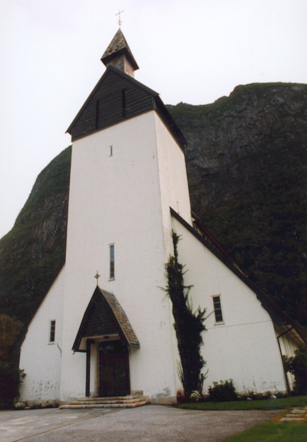 Både kyrkja og brua i Høyanger er oppført rundt 1960, prosjektert av Arnstein Arneberg, ein av dei fremste arkitektane i landet. Kyrkja, brua og byporten står i ein samanheng og set eit sterkt preg på Høyanger sitt bybilete. Opphavleg var kyrkja plassert litt lengre mot vest, framme på terrassen på Sæbø, løfta over byen og fjorden.