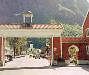 Då tilkomsten til Høyanger etter kvart vart flytta frå kaien og båten til Byporten og bilen, valde dei å leggje ein storslått akse mellom Byporten og kyrkja. Kyrkjetomta vart noko endra, og kyrkja dreia slik at våpenhuset stod nøyaktig mot byporten. Denne nye byaksen var eit brot med den opphavlege ideen i byplanen. Tidlegare var bedriftsporten det sentrale punktet i byen, staden alle gatene og aksane hadde sitt utgangspunkt i. Slik gir den stramme aksen mellom Byporten og kyrkja eit godt tidsbilete frå siste delen av 1950-talet. Aksen dokumenterer sterk trua på det moderne, på bilismen, på teknisk utvikling, kombinert med sterk forankring i barndomstrua.