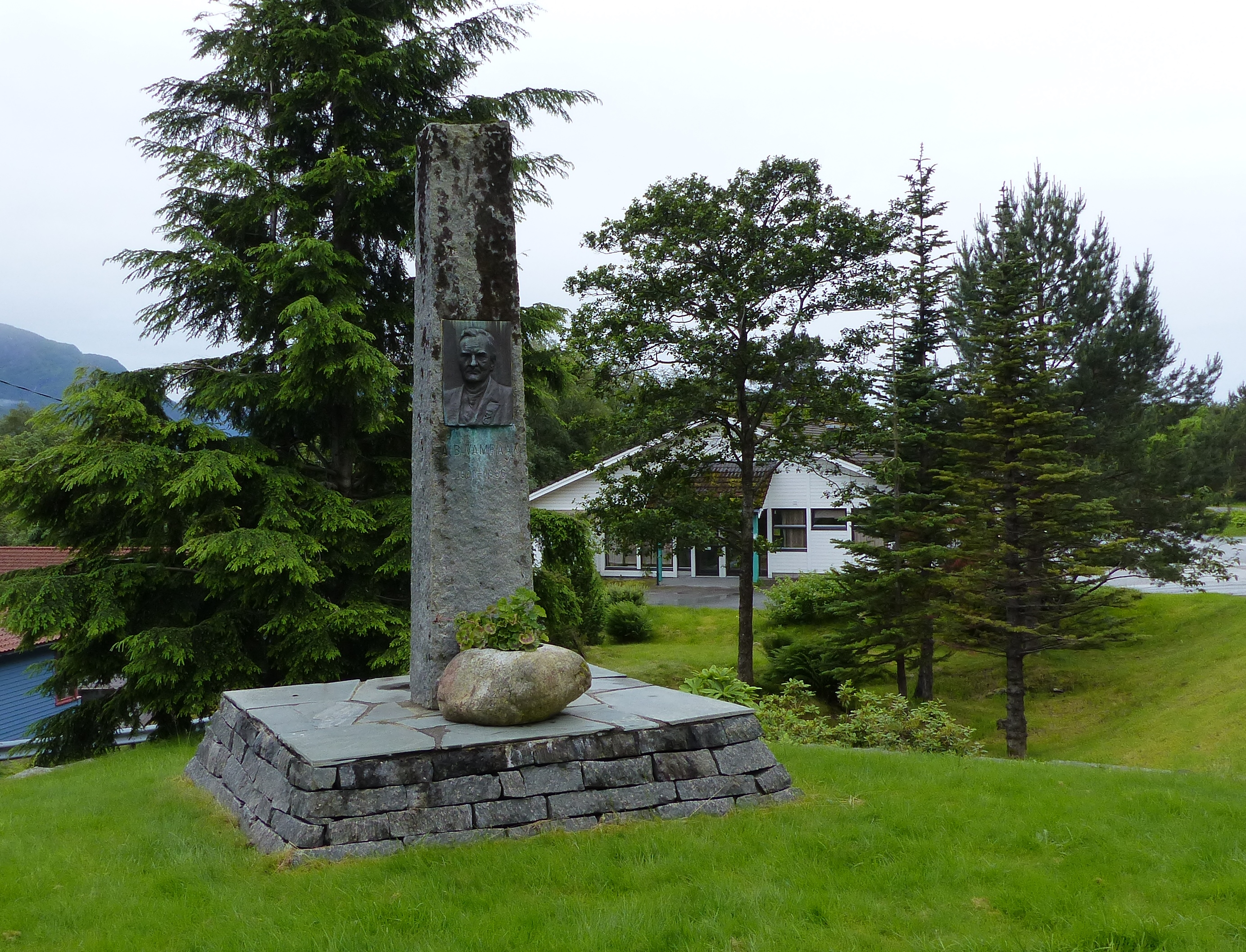 Vamraak-steinen er ein vel 3 m høg, tilhoggen stein med ansiktsrelieff i bronse og innskrifta A.B.VAMRAAK * 1861 - 1936. Relieffet er laga av kunstnaren Ambrosia Tønnesen. Rundt steinen er det mura opp og planert.