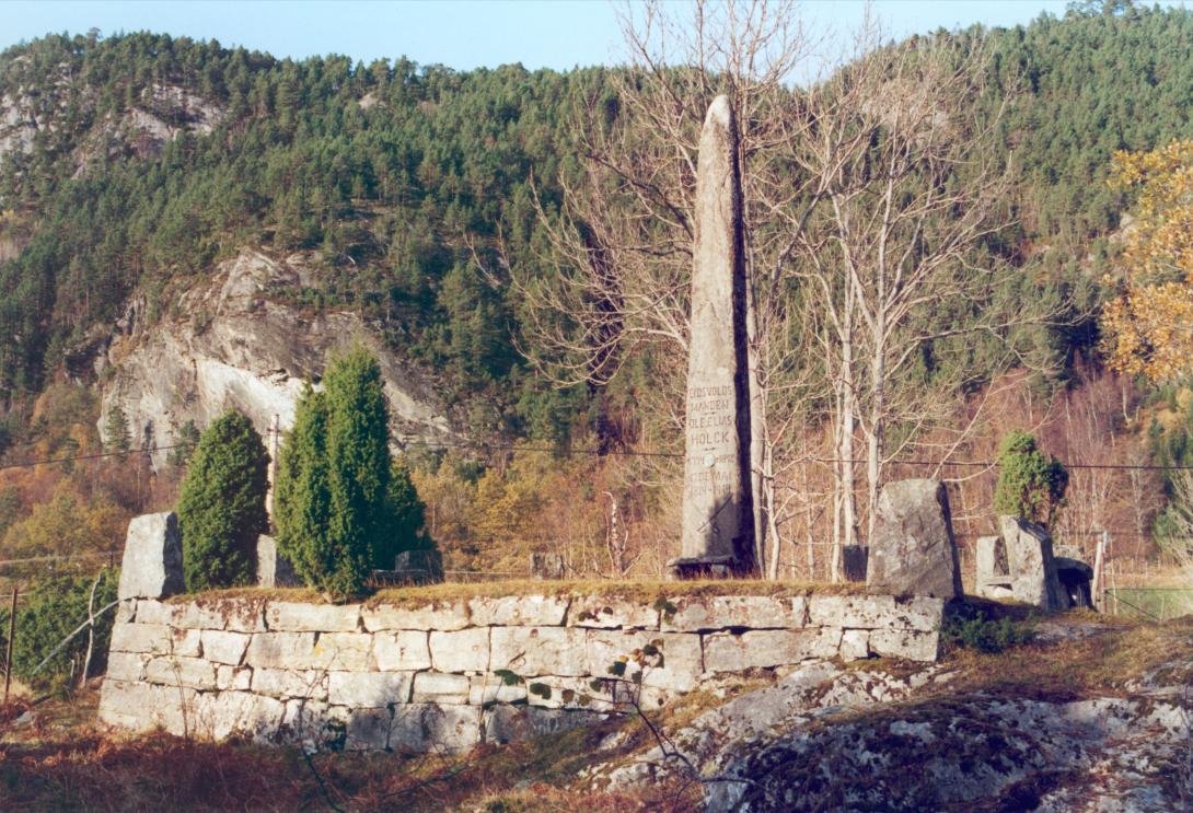 Elias Holck-minnesmerket minner litt om Harald-støtta ved Haugesund, ein høg bauta omkransa av prismeforma steinar. Ein 10 meter lang allé fører fram til ei lita steintropp opp til den ruvande bautasteinen, reist på den høgaste bergnabben i nærleiken av gardstunet på Alvera. Bautaen er kring 5 meter høg, ca. 70 cm brei ved rota og ca 40 cm tjukk, smalnar jamnt mot toppen og endar nærast i ein spiss. Steinen er forma som ein korde med handskjefte og blad.