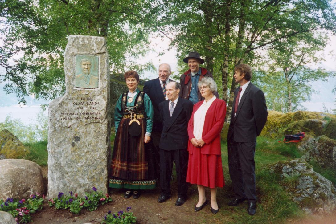 Mykje folk var samla til avdukingshøgtida der Olav Åm og Jarle Bondevik tala. Leikanger Blandakor let festlyden få del i tonerikdomen til toneskalden Olav Sande.
