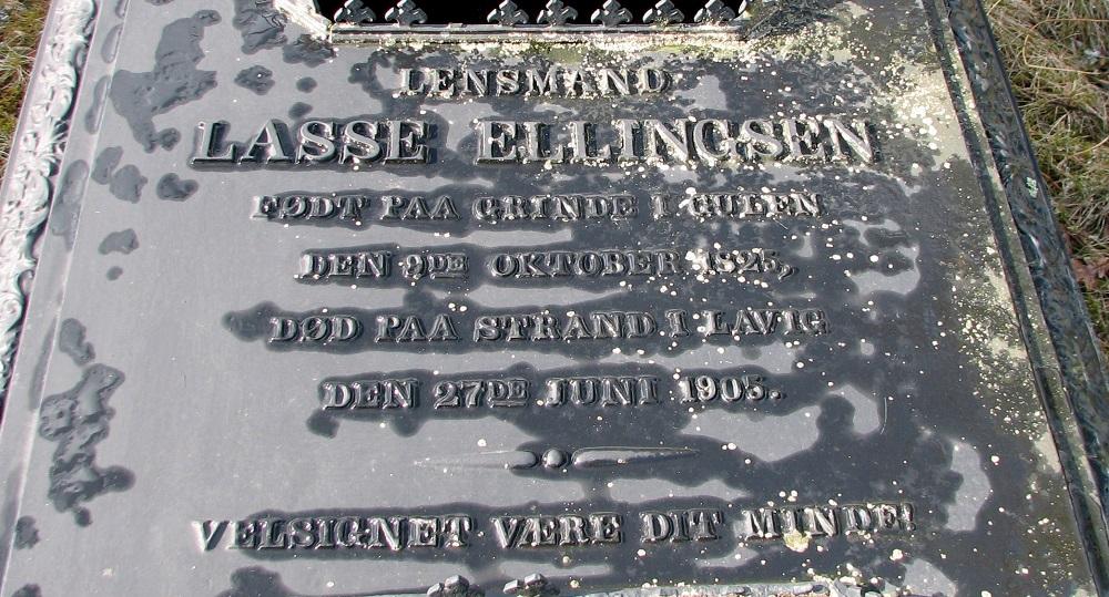 Skåsheim skreiv i 1956 at folk i Lavik kunne minnast at lensmann Ellingsen las opp kunngjeringar frå Tinghaugen. Han stod då på ei gammal eikerot. Det veks eikeskog i området der Tinghaugen er lokalisert. Lensmann Ellingsen vart gravlagd i Lavik. På gravminnet kan me lesa: ”Lensmand Lasse Ellingsen, født paa Grinde i Gulen, den 9de Oktober 1825, død paa Strand i Lavig, den 27de juni 1905.”